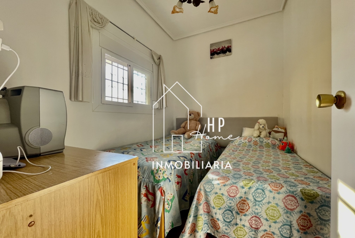 La carpintería exterior de este chalet es de doble cristal climalit con aluminio blanco, mosquiteras y rejas, dispone de cámaras de vigilancia, la entrada dispone de 3 toldos para los días más calurosos.