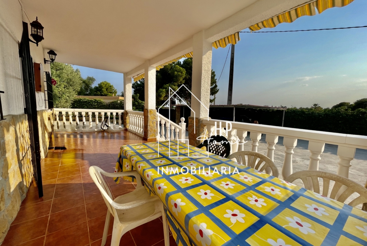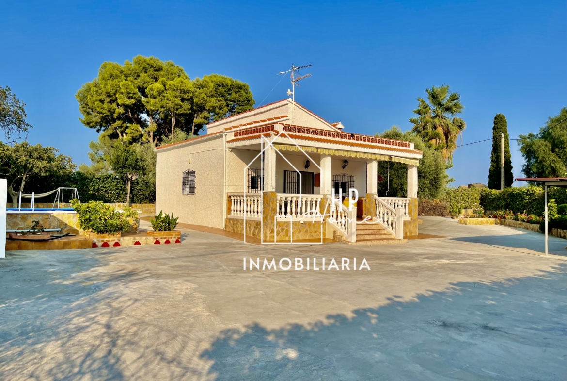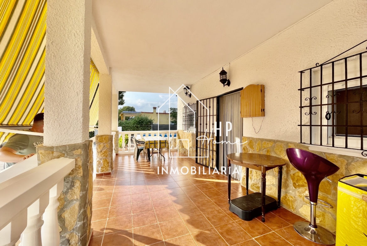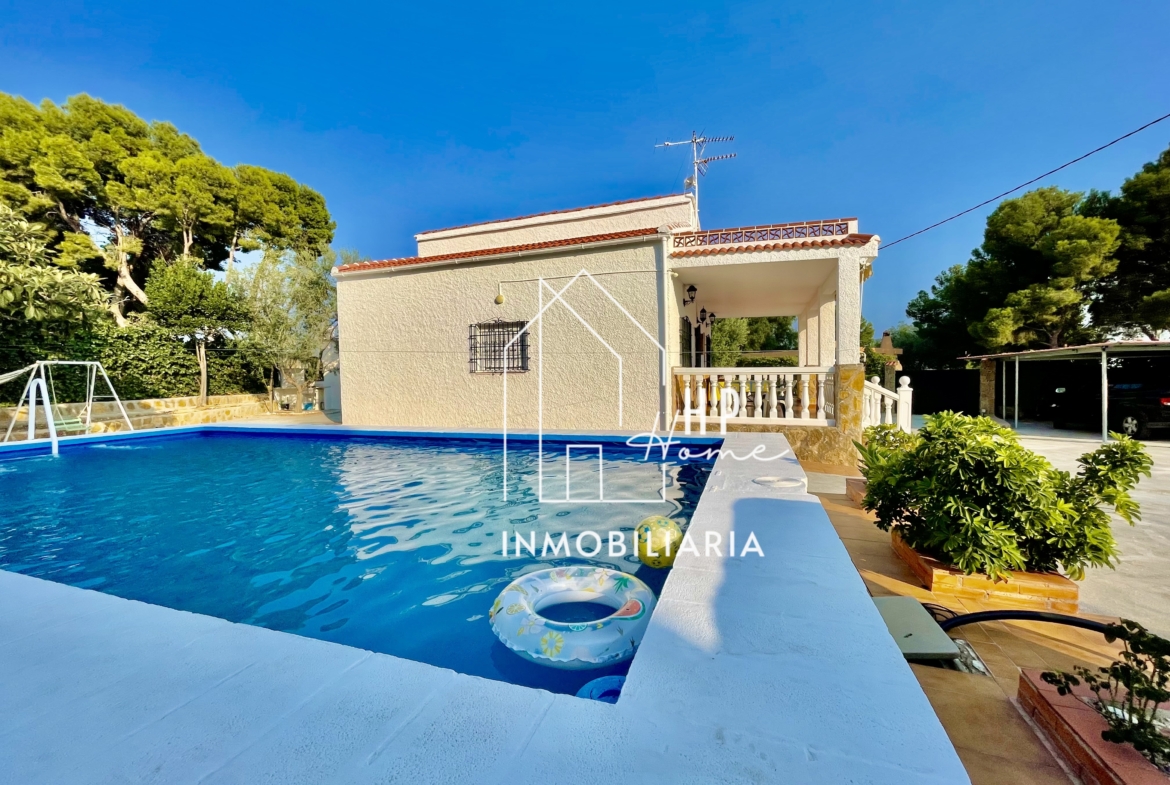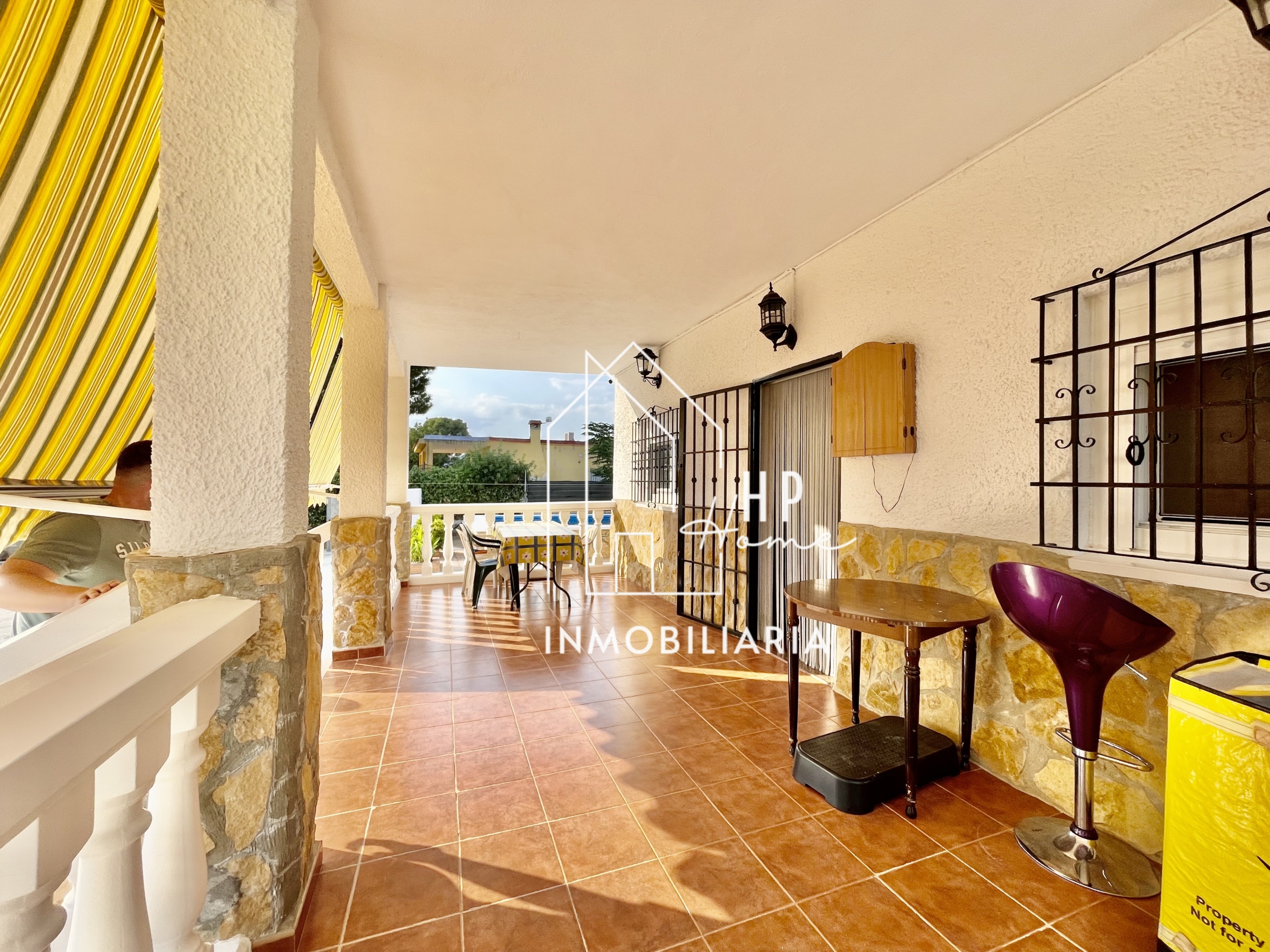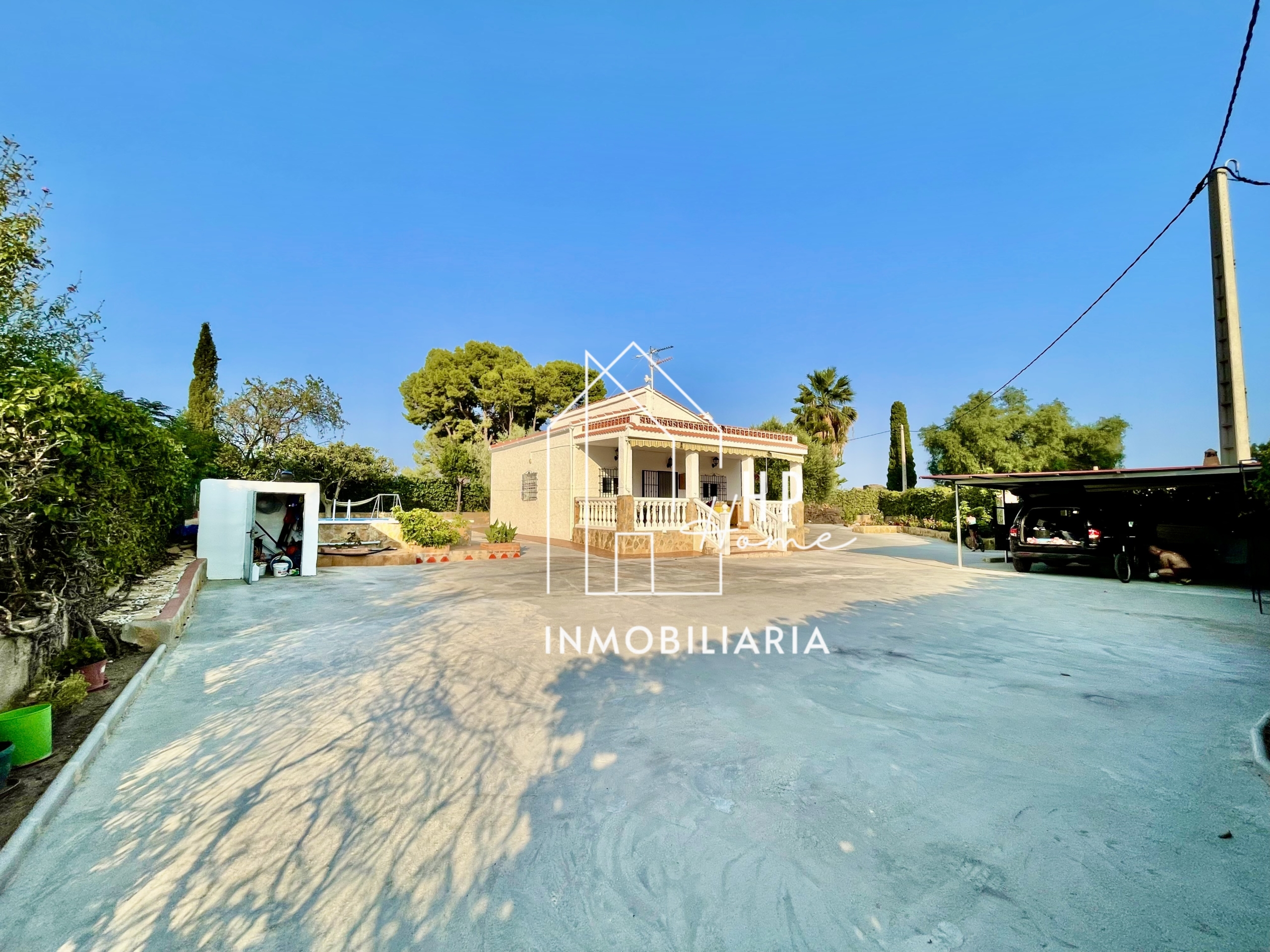 En el exterior tenemos una piscina con depuradora nueva de este año, un paellero perfecto con almacenaje y una zona techada para guardar nuestros vehículos, pasando a la zona de jardín nos encontramos con una zona muy cómoda y bonita para disfrutar de unas tardes y noches con nuestros familiares y amigos,
